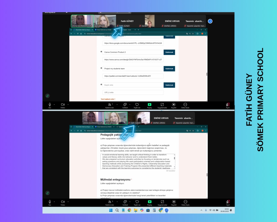 Webinara, Türkiye ve Romanya’dan proje kurucuları ve partnerleri katılım sağladı. Okulumuzdan okul müdürümüz Fatih GÜNEY ve sınıf öğretmenlerimizden Mehmet SOYDAN da katıldı. Etkinlik, proje sürecinin değerlendirilmesi, ortak ürünlerin paylaşımı ve deneyimlerin aktarılması açısından son derece anlamlı geçti.